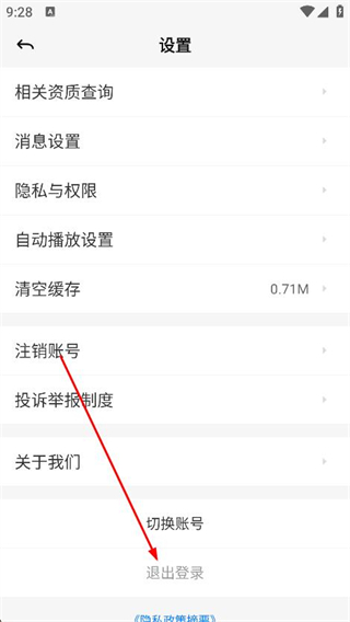 3、进入设置页面后,下滑找到并点击退出登录选项。