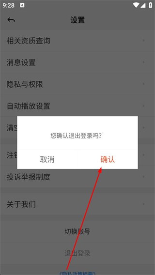 4、在弹出的提示框中点击确认,即可退出当前登录账号。