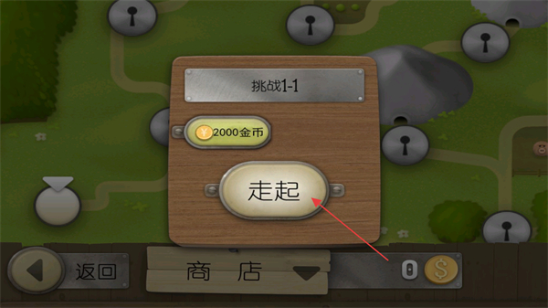 1、在关卡选择界面,确认关卡信息,如挑战1-1,消耗2000金币后点击走起进入游戏。