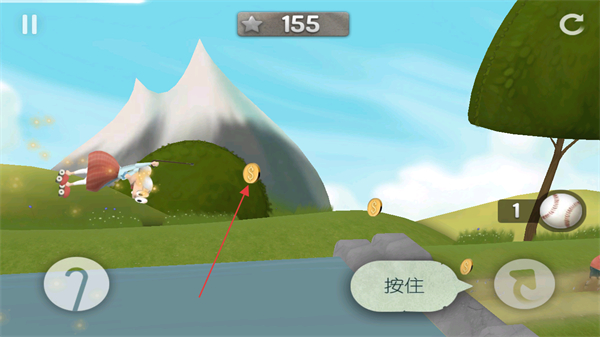 2、进入游戏后,老奶奶开始跑酷,按住屏幕相关区域控制老奶奶跳跃等动作,收集沿途金币。