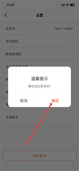 4、在弹出的提示框中,点击确定即可完成退出账号。