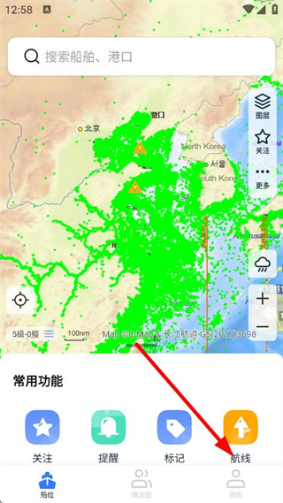 2、在软件主界面,点击下方常用功能中的航线,进入航线相关页面。