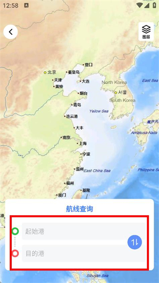 3、进入航线查询页面后,填写起始港和目的港,进行航线查询准备。