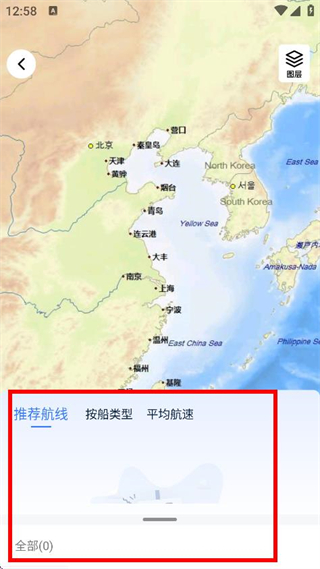 4、完成起始港和目的港填写后,即可查看推荐航线分类的航线信息。