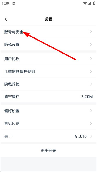 2、在设置界面,点击账号与安全,进入账号与安全页面。