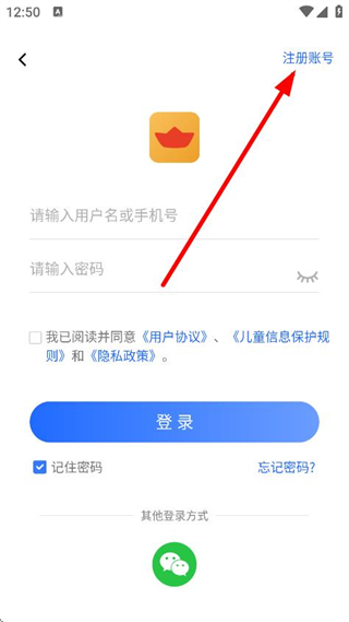 3、在登录界面,点击右上角的注册账号,进入账号注册页面。
