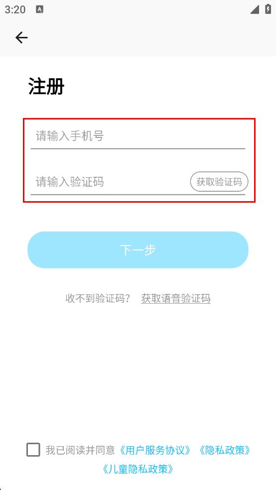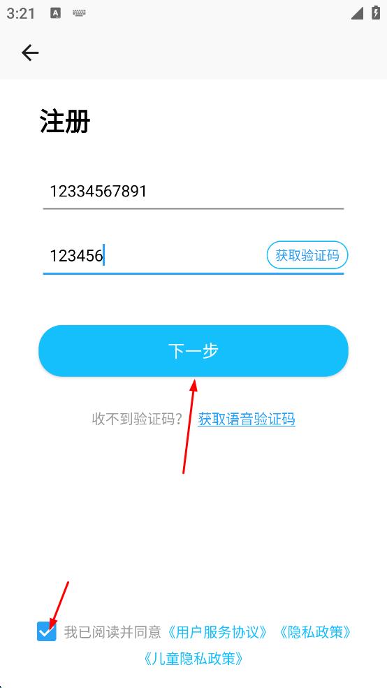 3、在注册页面,输入手机号,获取并填写验证码,勾选相关协议。