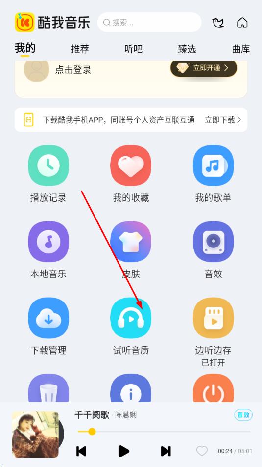 1、打开酷我音乐应用,点击底部导航栏中的我的选项。