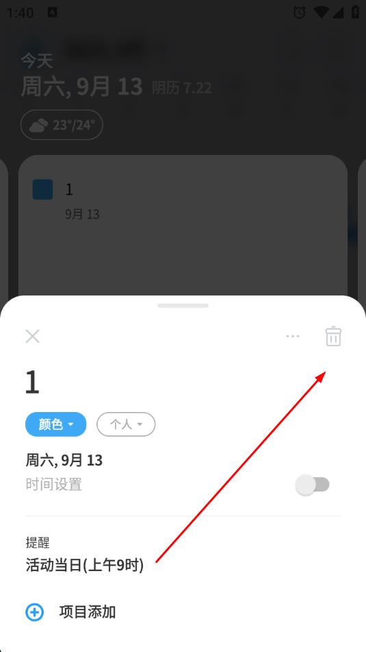 3、在事件的编辑页面,点击右上角的垃圾桶图标,进入删除确认流程。
