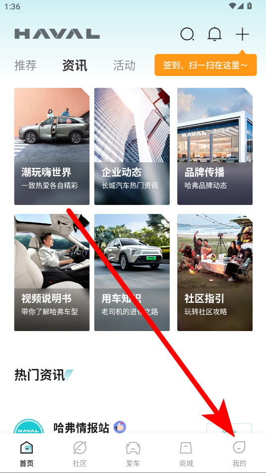 1、打开哈弗智家APP,在首页点击右下角我的选项,进入个人中心界面。