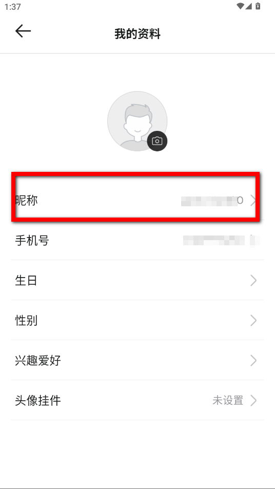 3、在我的资料页面,点击昵称选项,进入昵称修改界面。