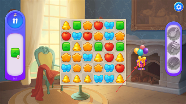 1、进入游戏,关注右侧带气球的礼盒,点击可开启奖励流程。