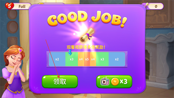 4、关卡完成后,点击绿色领取按钮直接获取奖励。