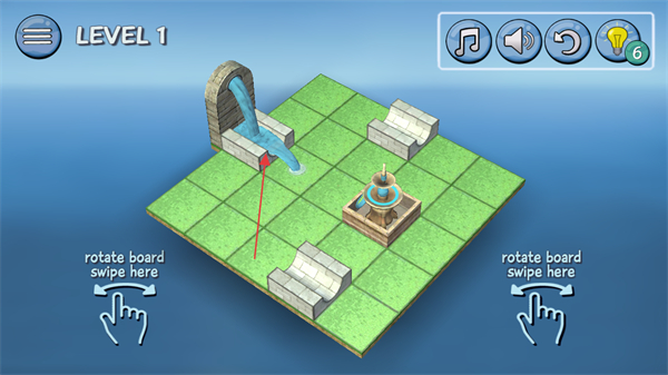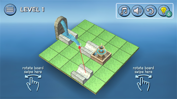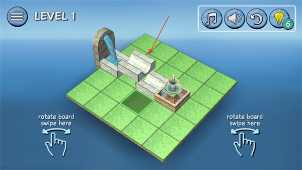 2、按照提示,通过滑动操作转动板块,调整石砖位置,引导水流方向。