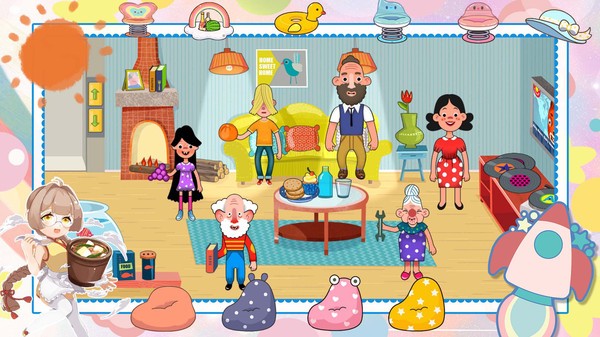 佩皮小镇假期生活是很适合小孩子玩的休闲模拟手游,整个画面都是以卡通形式呈现,里面的人物、动物以及房间、家具等等都很可爱,能够吸引小朋友的目光,通过游戏可以体验和家人看电视、做家务、逗宠物等趣味玩法。