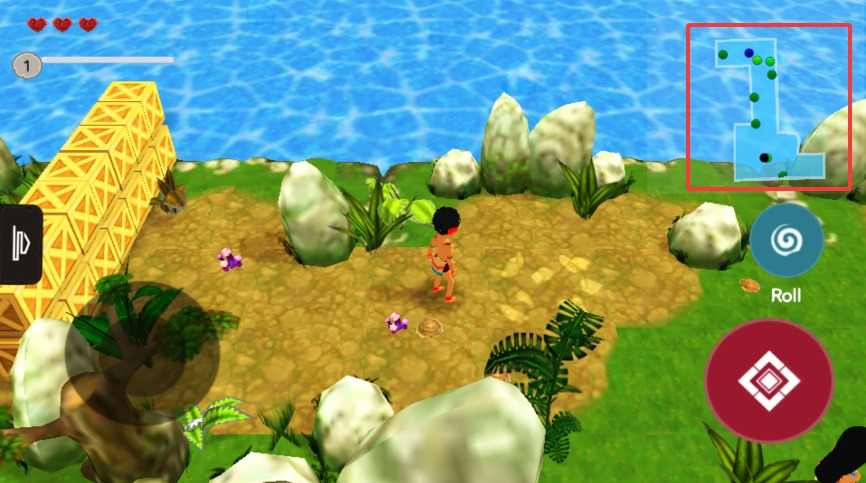 3、使用左侧虚拟摇杆控制角色移动,右侧交互按钮可实现采集与探索功能。