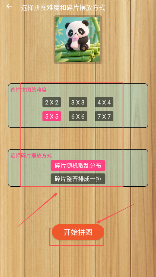 1、选择开始游戏进入主界面准备进行拼图挑战,熟悉操作界面和功能布局设计特点。