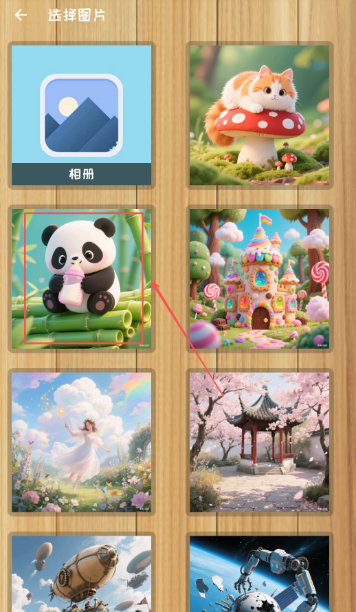 2、从相册选择照片或使用内置素材确定拼图内容,根据喜好选择合适图片类型风格。