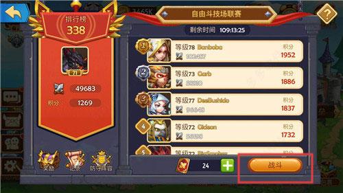 4、竞技场每天免费打两次,后面再挑战得用门票,刺激对战赢取丰厚奖励。