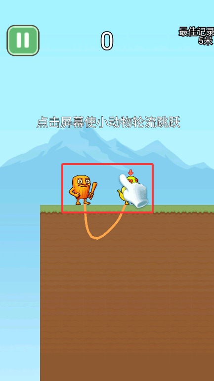 4、通过交替点击屏幕控制多个小动物,通过控制角度进行跳跃完成闯关任务。