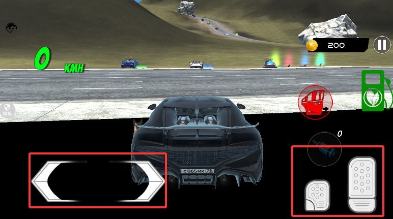 4、进入赛场后使用左侧按钮控制方向,右侧按键分别控制车辆加速与倒车功能。