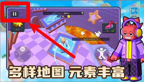 2.暂停功能:屏幕左上角的暂停按钮随时可用,玩家能够在紧张关卡中调整节奏,灵活掌控挑战过程节拍。
