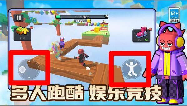 3.操作竞速:屏幕左右虚拟按键精准控制移动与跳跃,支持多人同台比拼,在竞技对抗中感受刺激与畅快。