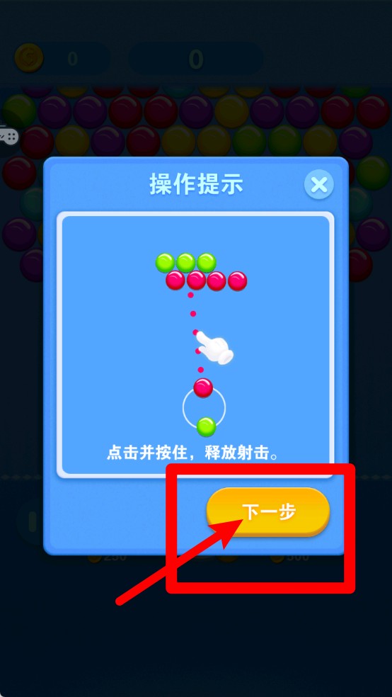 1.操作提示:新手教学会清楚展示射击方式,点击并按住即可发射彩球,轻松上手快速融入游戏节奏,适合所有玩家体验。