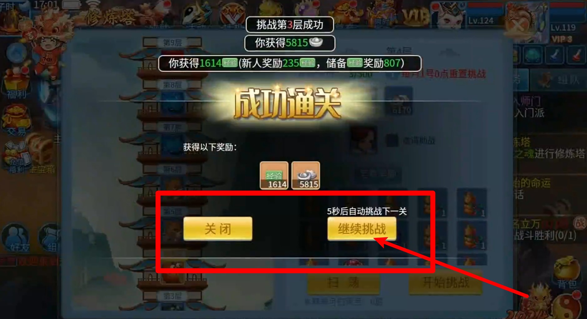3.副本挑战成功后可直接获得经验和金币等奖励,还能选择继续挑战更高层数,体验不断突破极限的紧张乐趣。