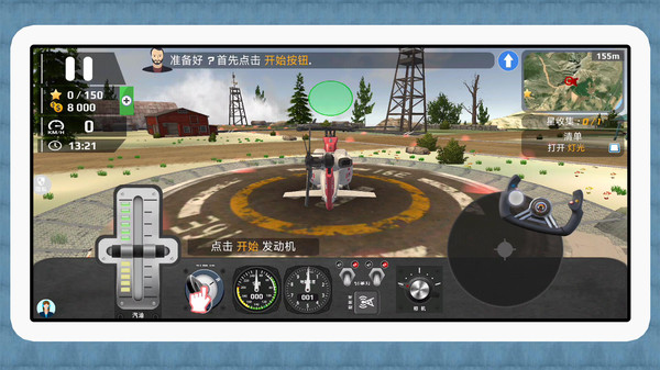 1.飞行操作:通过屏幕上的油门与操纵杆控制直升机,玩家需灵活调整高度与方向,完成飞行任务感受逼真的驾驶体验。