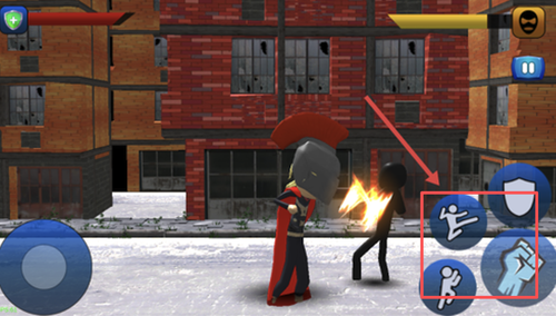 1、通过左侧虚拟摇杆控制火柴人前后左右移动,躲避敌人攻击并寻找进攻时机,操作响应灵敏,需精准掌握走位节奏。