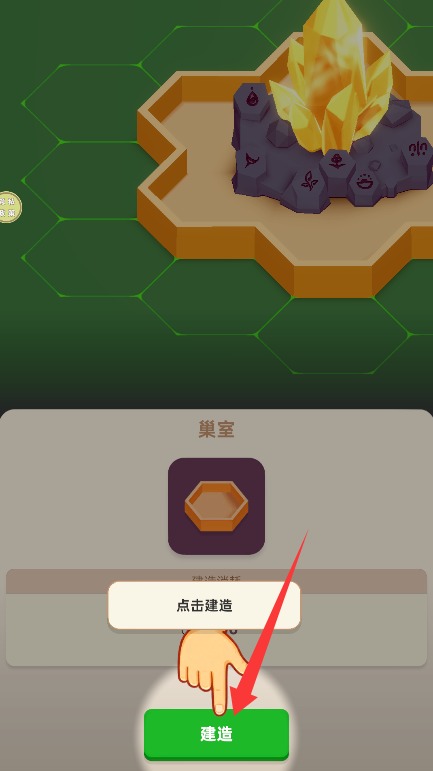 1、进入游戏后首先点击建造功能入口,开始规划你的蜜蜂王国基础设施布局。