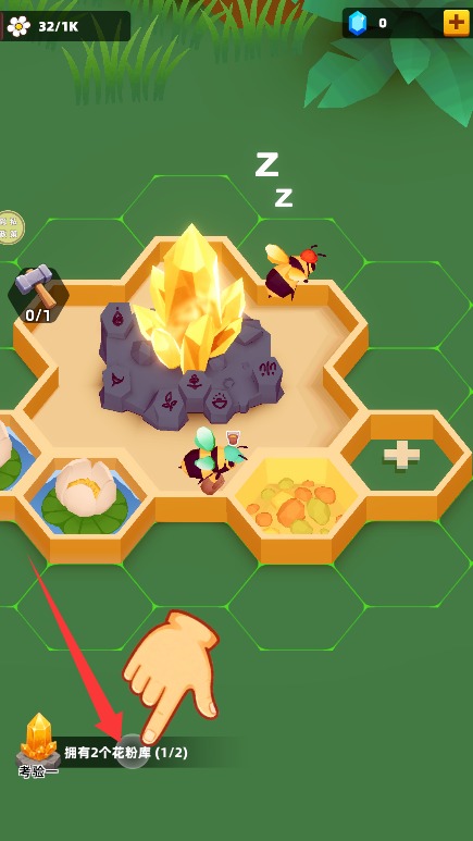 4、完成花圃与花粉房建造后蜜蜂自动工作,通过左下角任务栏查看并完成任务。