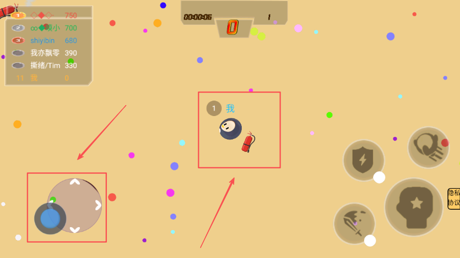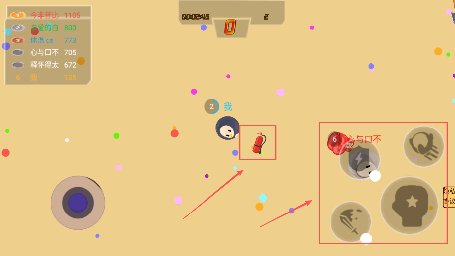 2、通过敏捷的操作提升自己的战斗力,场上所有其他对手都是敌人,需要灵活应对他们的攻击,将他们全部击败才能晋级。