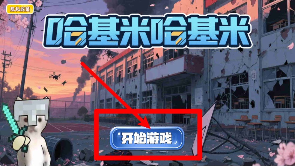 1.主界面点击醒目的开始游戏按钮即可开局,立刻进入校园废墟场景,化身干员猫猫展开独特吃鸡冒险。
