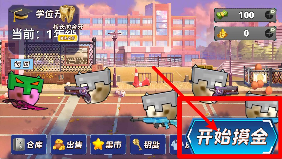 2.准备界面点击"开始摸金"按钮进入挑战,收集武器与资源,击败敌人后还能体验紧张又惊险的撤离玩法。