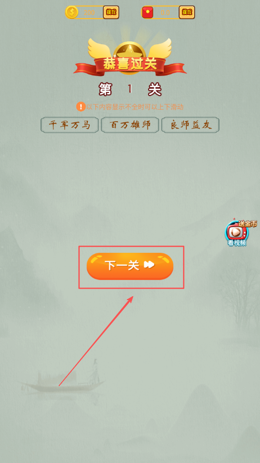 4、确定答案后,在屏幕上输入或选择对应的成语,答对就能进入下一关,还能获得积分,积累到一定程度有红包奖励。