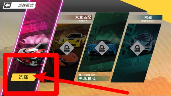 3.模式选择:游戏提供任务、匹配和挑战等多样模式,玩家可根据喜好选择玩法,体验不同竞速乐趣。