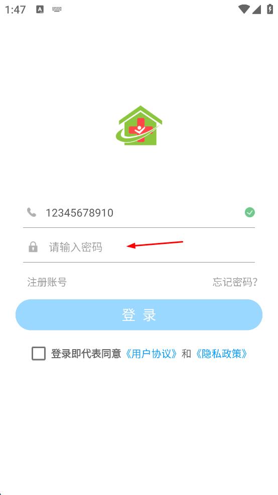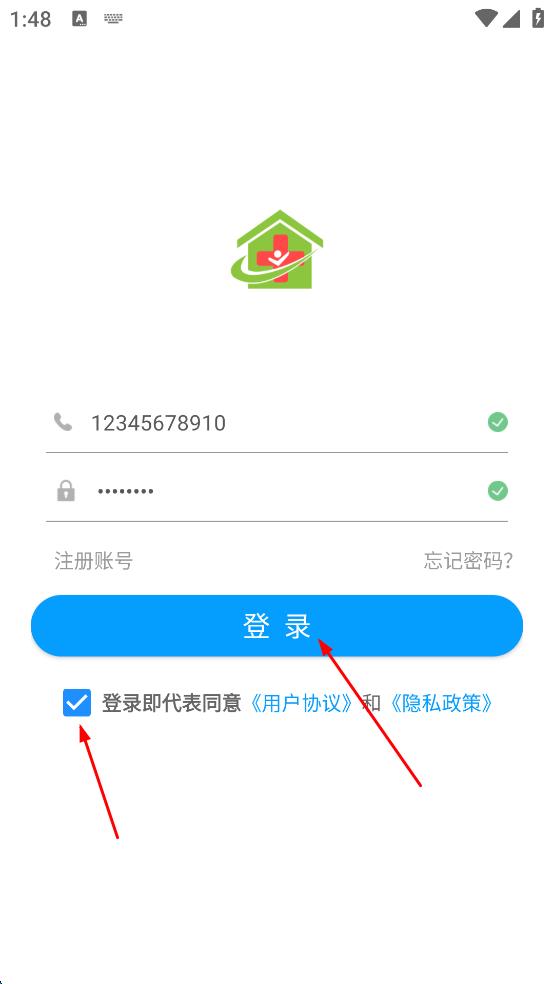 4、勾选登录即代表同意用户协议和隐私政策,然后点击登录按钮。