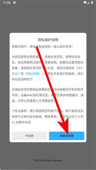 1、打开幸福寻甸,在弹窗中点击同意并使用。