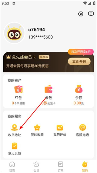1、打开急先蜂外卖,点击底部导航栏我的选项。