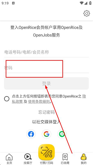1、打开OpenRice,在隐私政策界面点击同意,进入主界面。