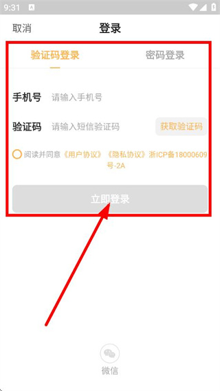 4、输入手机号、验证码,点击立即登录,完成登录操作。
