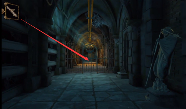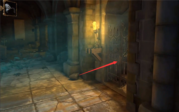 3、继续向前探索新区域,注意观察右侧门扉上可获取的闲置金属长杆道具。