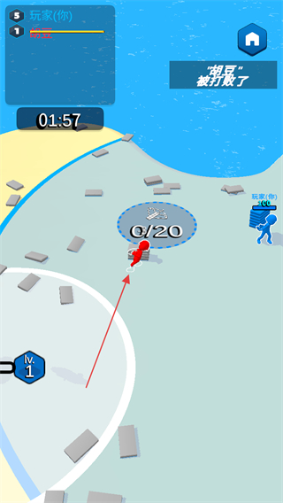 2、搬运砖块过程中,避免被其他玩家攻击,若遇到敌人,可尝试躲避或反击,同时关注搬运进度0/20。