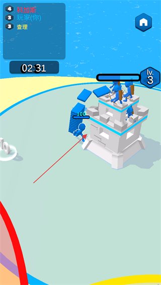 3、将砖块搬运至城堡处,提升城堡等级如提升至lv3,增强自身实力。