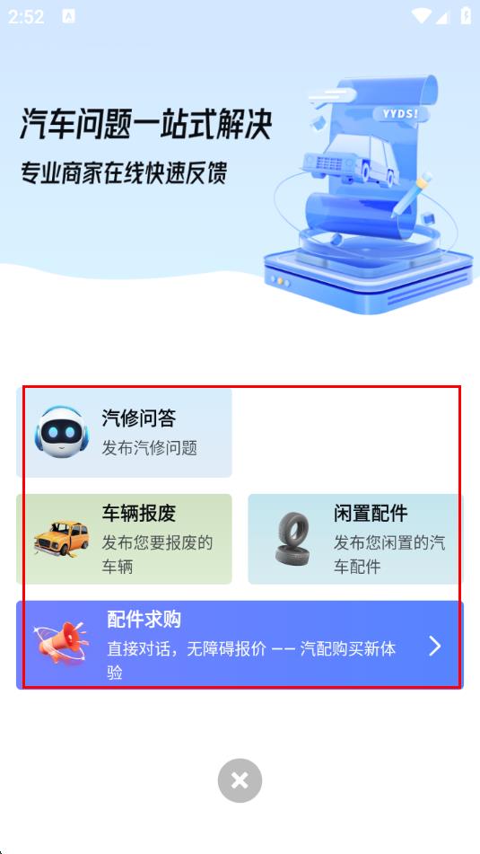 2、在弹出的汽车问题一站式解决界面中,选择汽修问答选项。