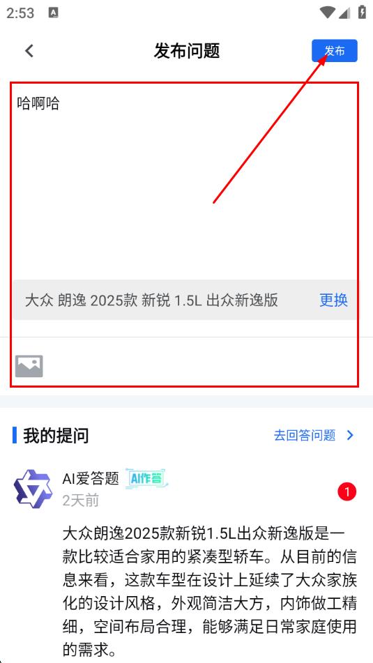 3、进入发布问题页面,输入想要提问的内容,还可以添加相关图片,点击发布按钮。