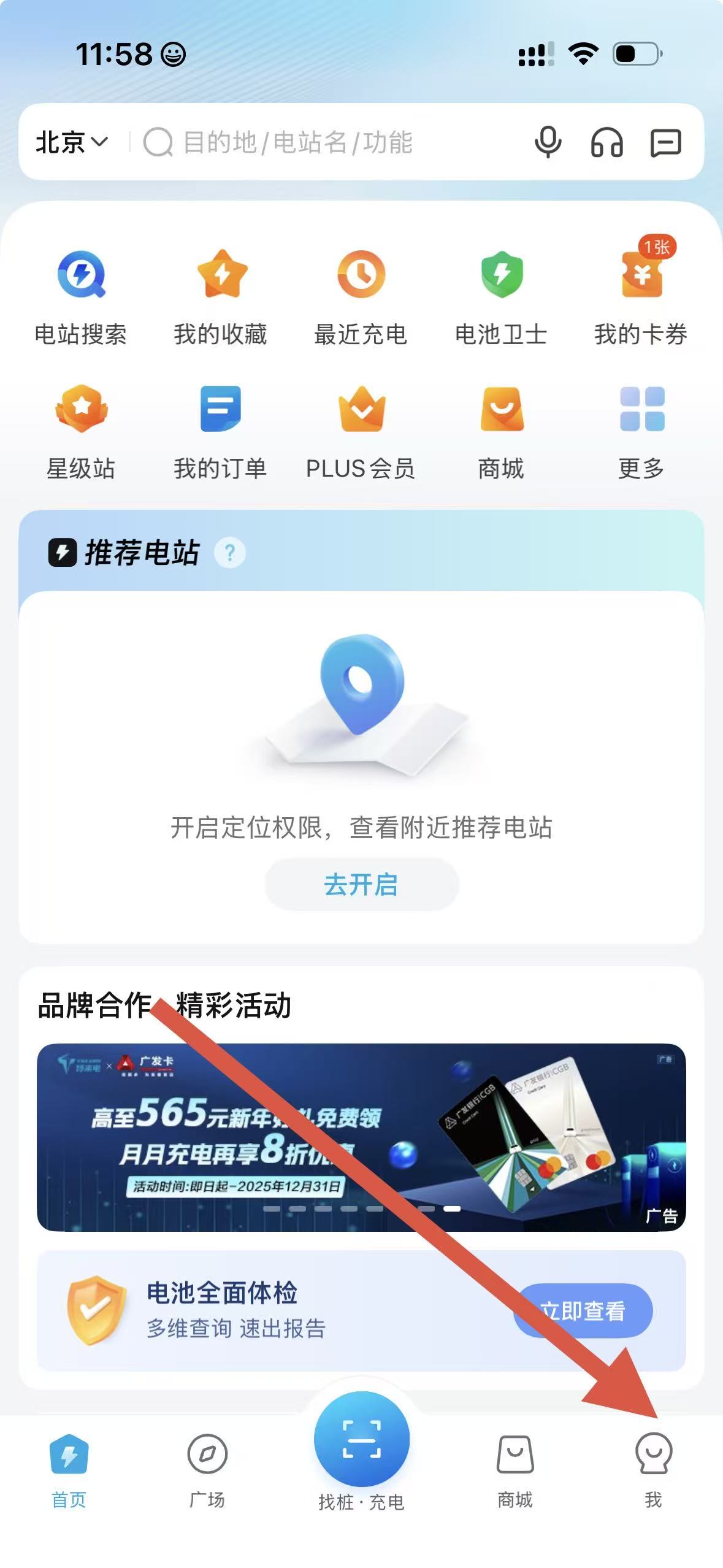 1、在特来电首页,点击右下角我的选项,进入个人界面。