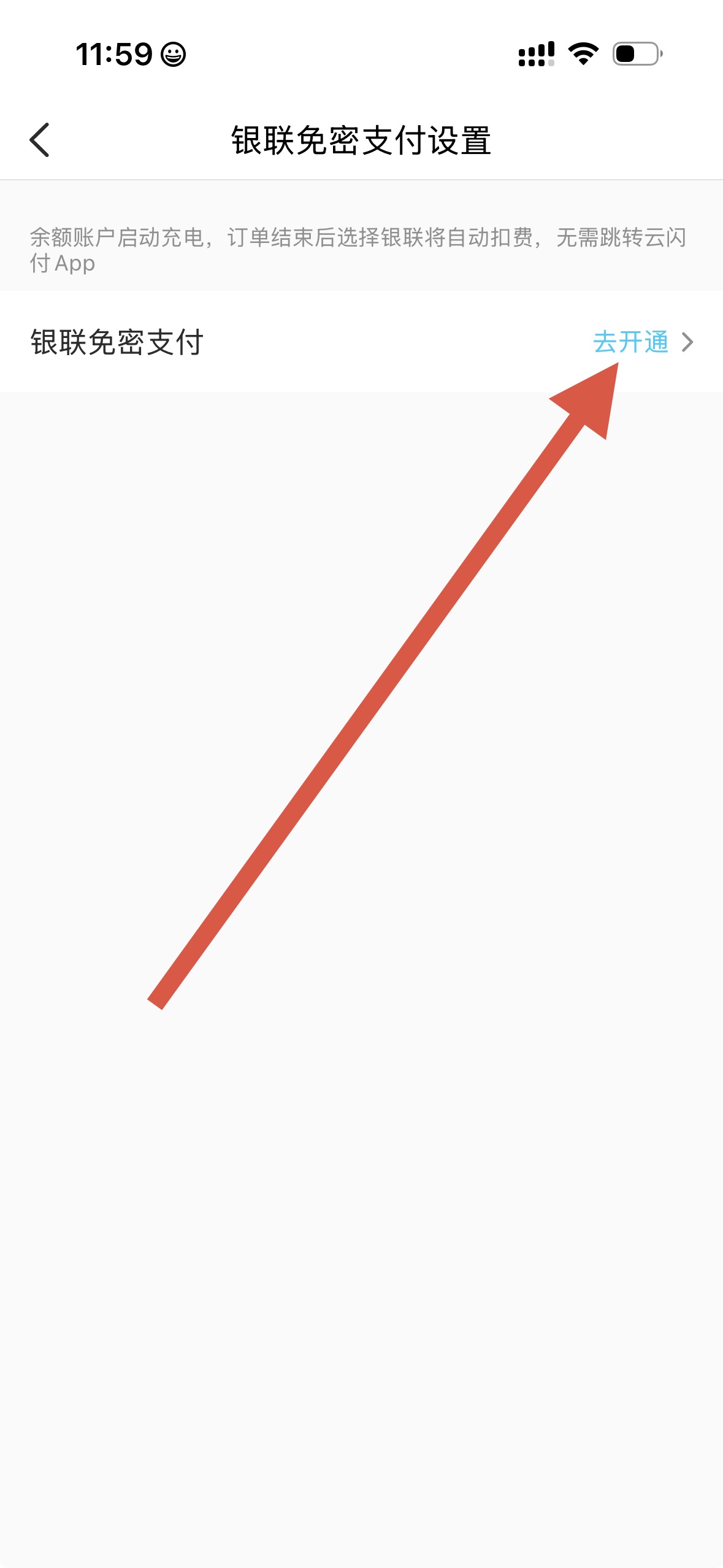 3、在支付设置页面里,选择银联免密支付设置等具体支付方式设置项。
